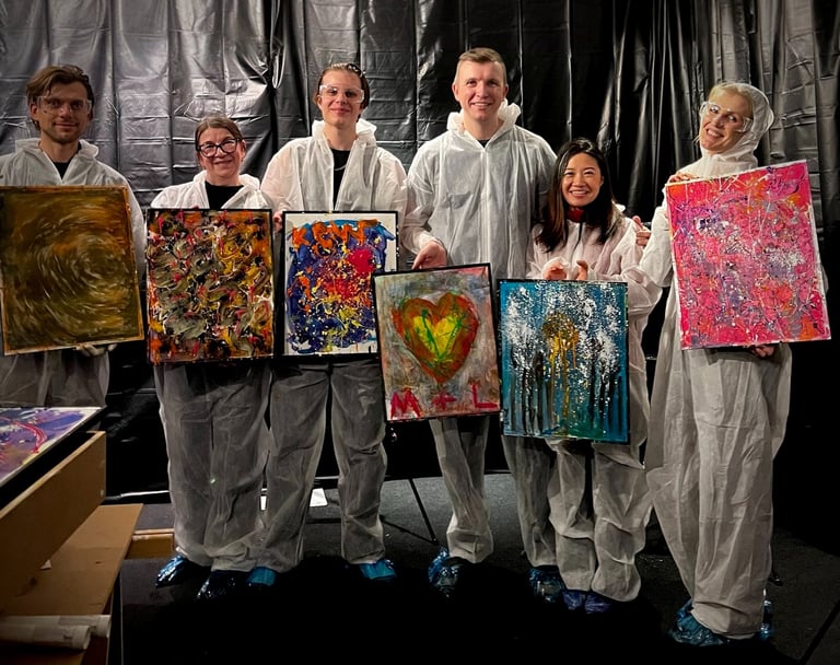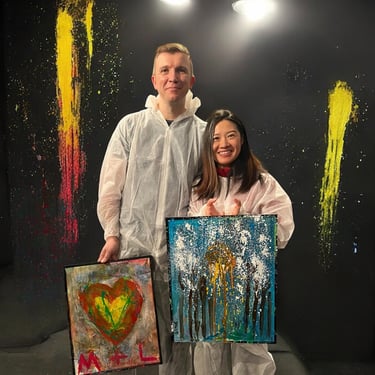 Expect real splashes. You throw, flick, and drip paint onto art boards, unwind through movement, and create unique art together. It’s playful, energizing, and completely beginner-friendly.
