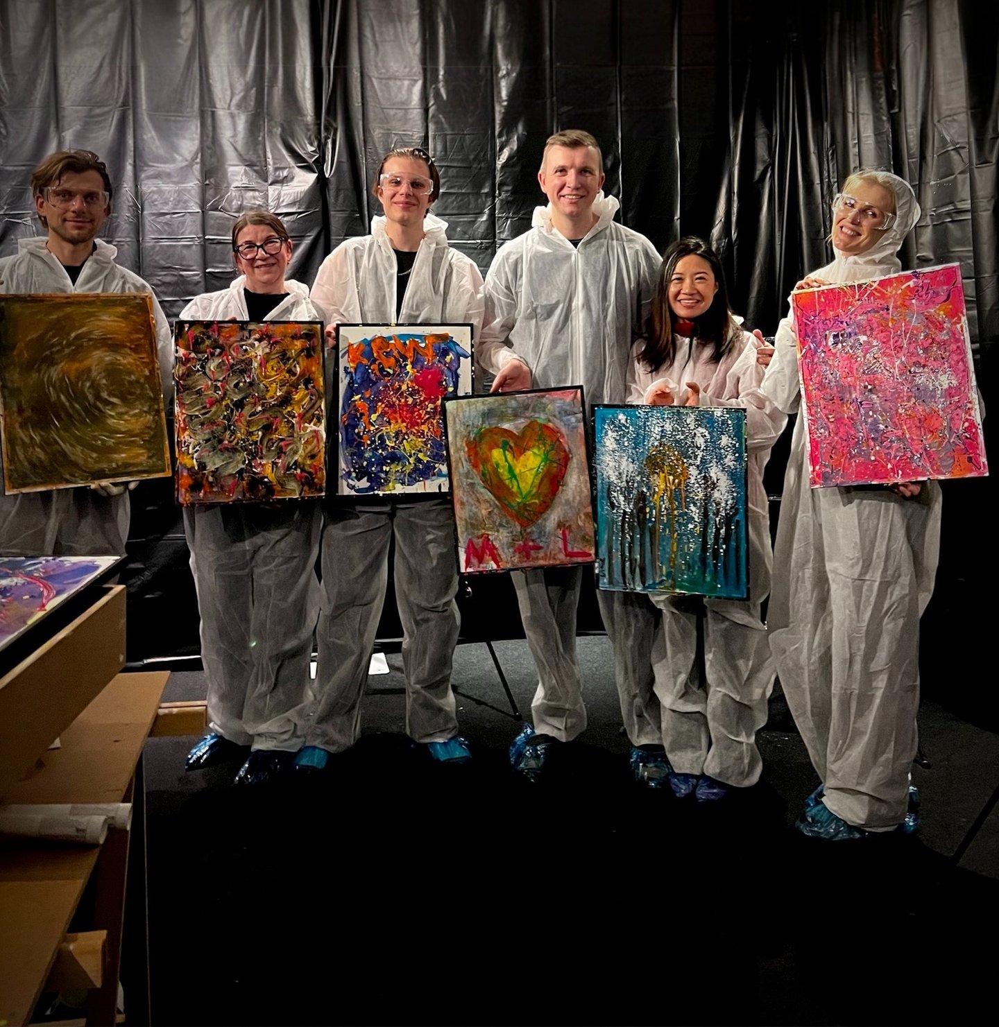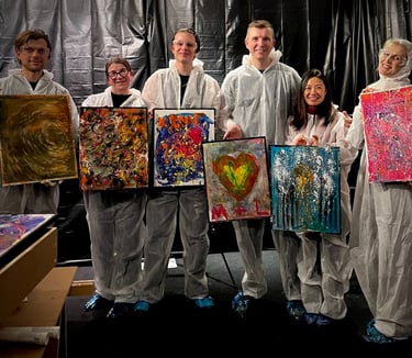 Förbered er på riktiga färgstänk. Ni kastar, skvätter och droppar färg på målningstavlor, slappnar av genom rörelse och skapar unik konst tillsammans. Det är lekfullt, energigivande och helt perfekt även för nybörjare.